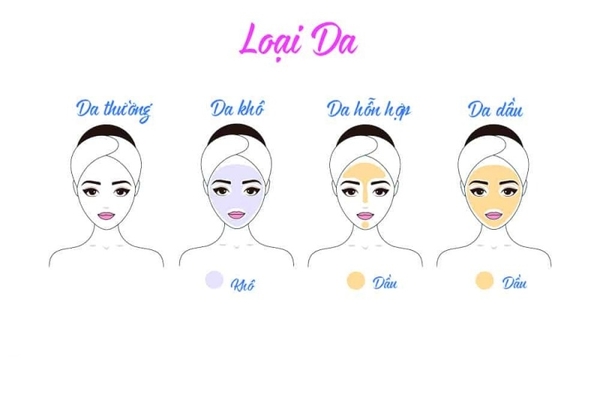 Loại da được quyết định bởi các yếu tố di truyền học nhưng tình trạng của da thì phụ thuộc vào các tác nhân bên trong và bên ngoài mà chúng ta mắc phải. Có 4 loại da cơ bản : Da thường, da khô, da dầu và da hỗn hợp. Cụ thể mỗi loại da có những biểu hiện như sau :