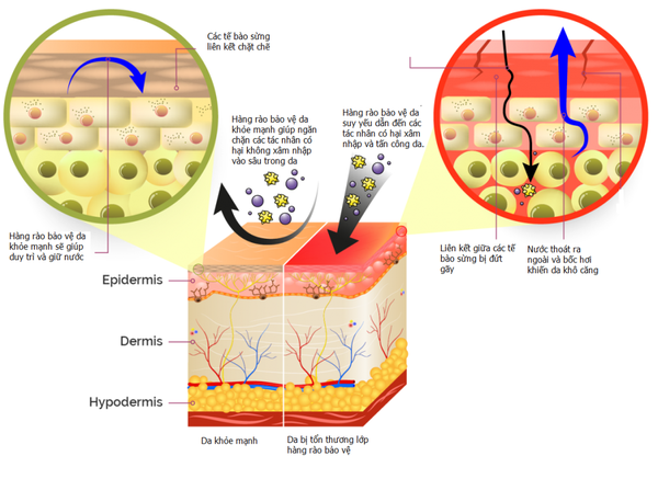 Nguyên nhân : Do sự thiếu hụt các nhân tố dưỡng ẩm tự nhiên : Urea, axit lactid và các amino axit giúp liên kết với phân tử nước. Và sự thiếu hụt các lipids biểu bì như : ceramindes, axit béo và cholesterol là những chất cần thiết cho hàng rào chức năng da khỏe mạnh.
