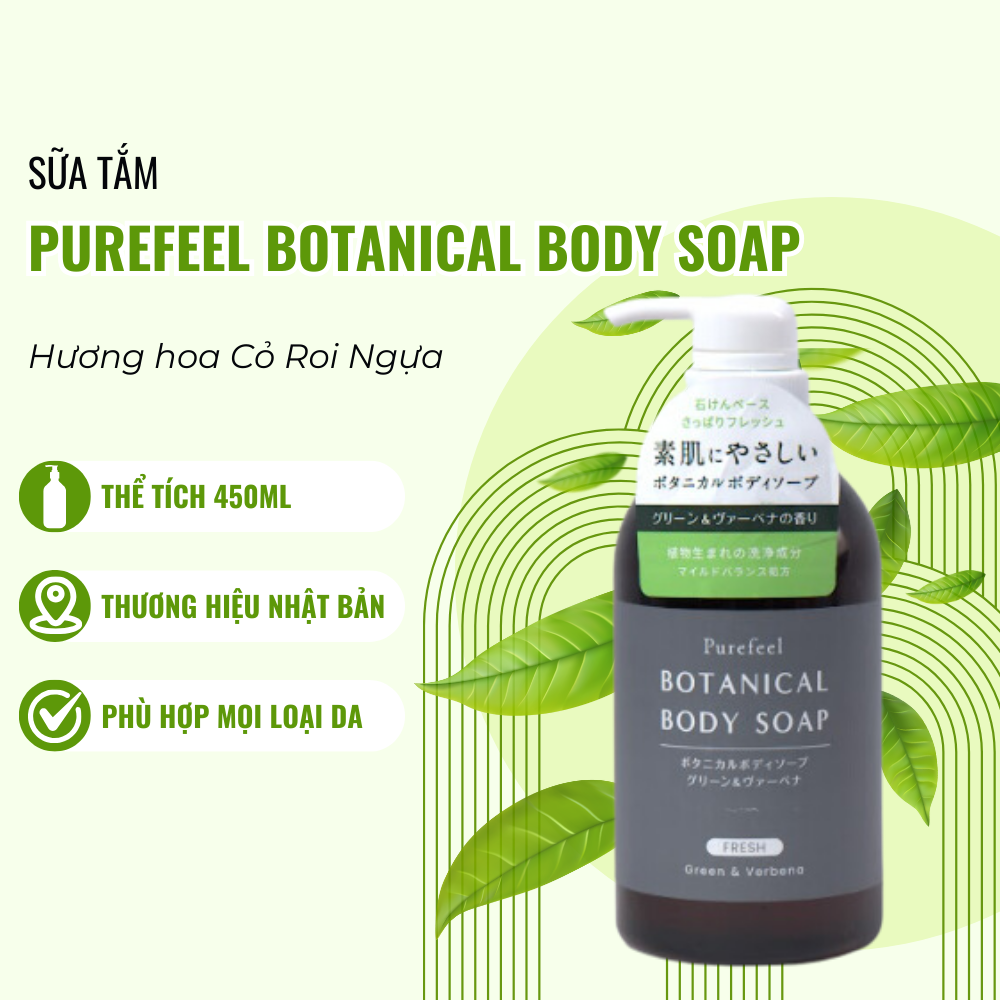 Sữa Tắm Daiichi Sekken Purefeel Botanical Body Soap Green & Verbena Fresh Hương Mã Tiên Thảo 450ml được chiết xuất từ các thành phần có nguồn gốc tự nhiên, tạo nên sự cân bằng dịu nhẹ, làm sạch da nhưng vẫn đảm bảo sự mềm mịn cho da của bạn.